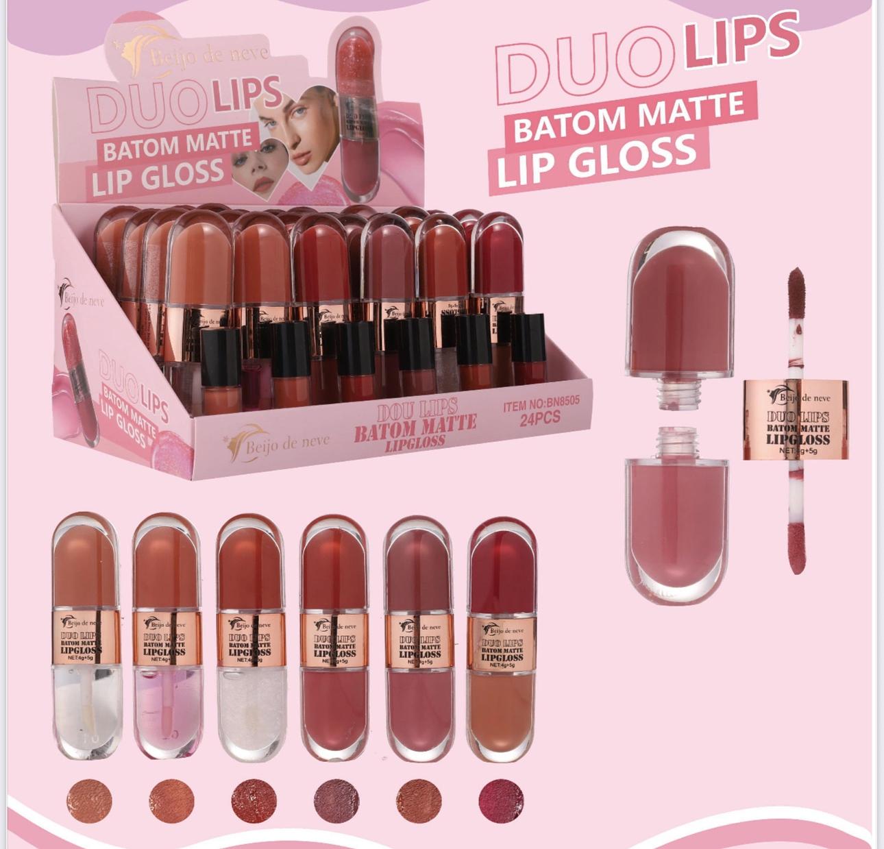 Batom mate 2em 1 lip gloss beijo de neve