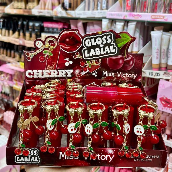 Gloss labial cereja com chaveiro miss victory