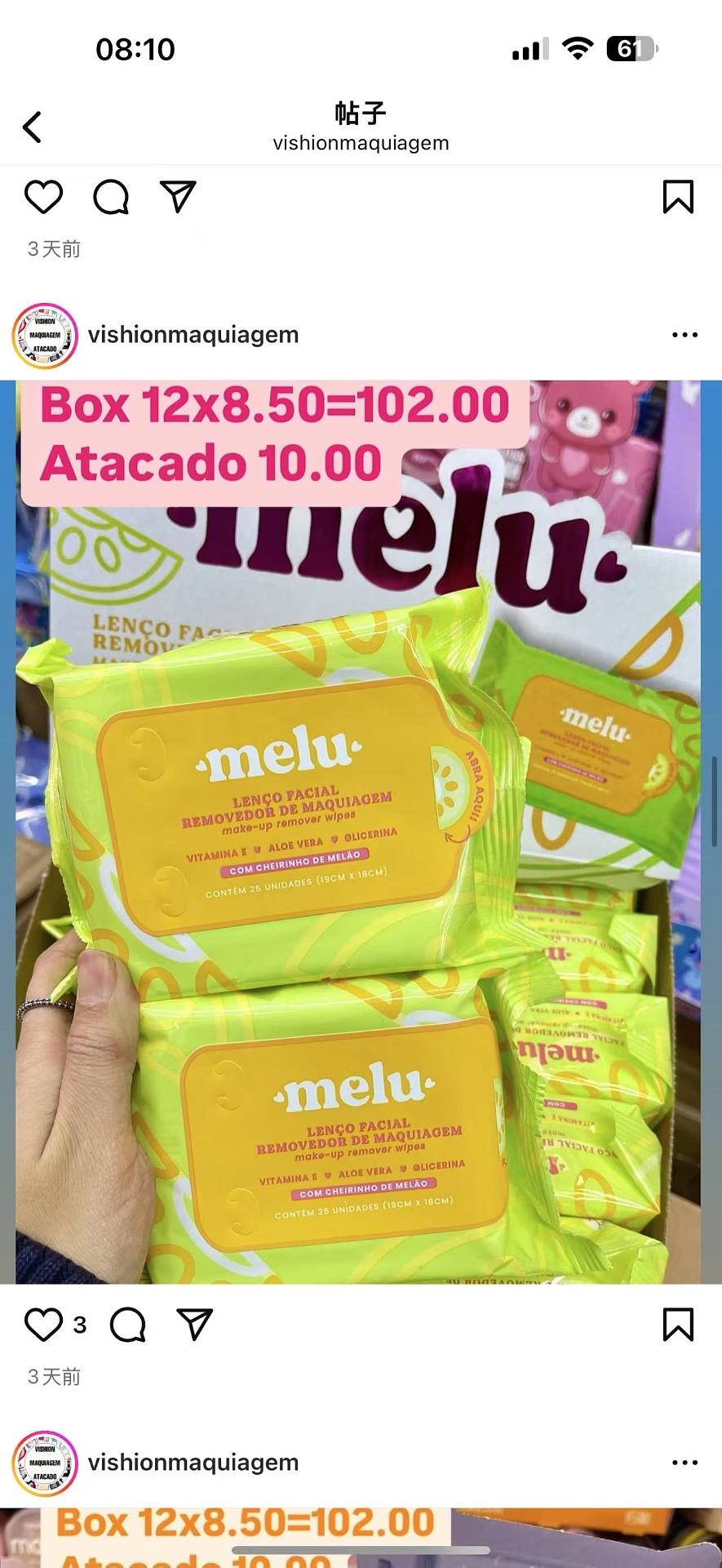 Lenço umedecido demaquilante melu