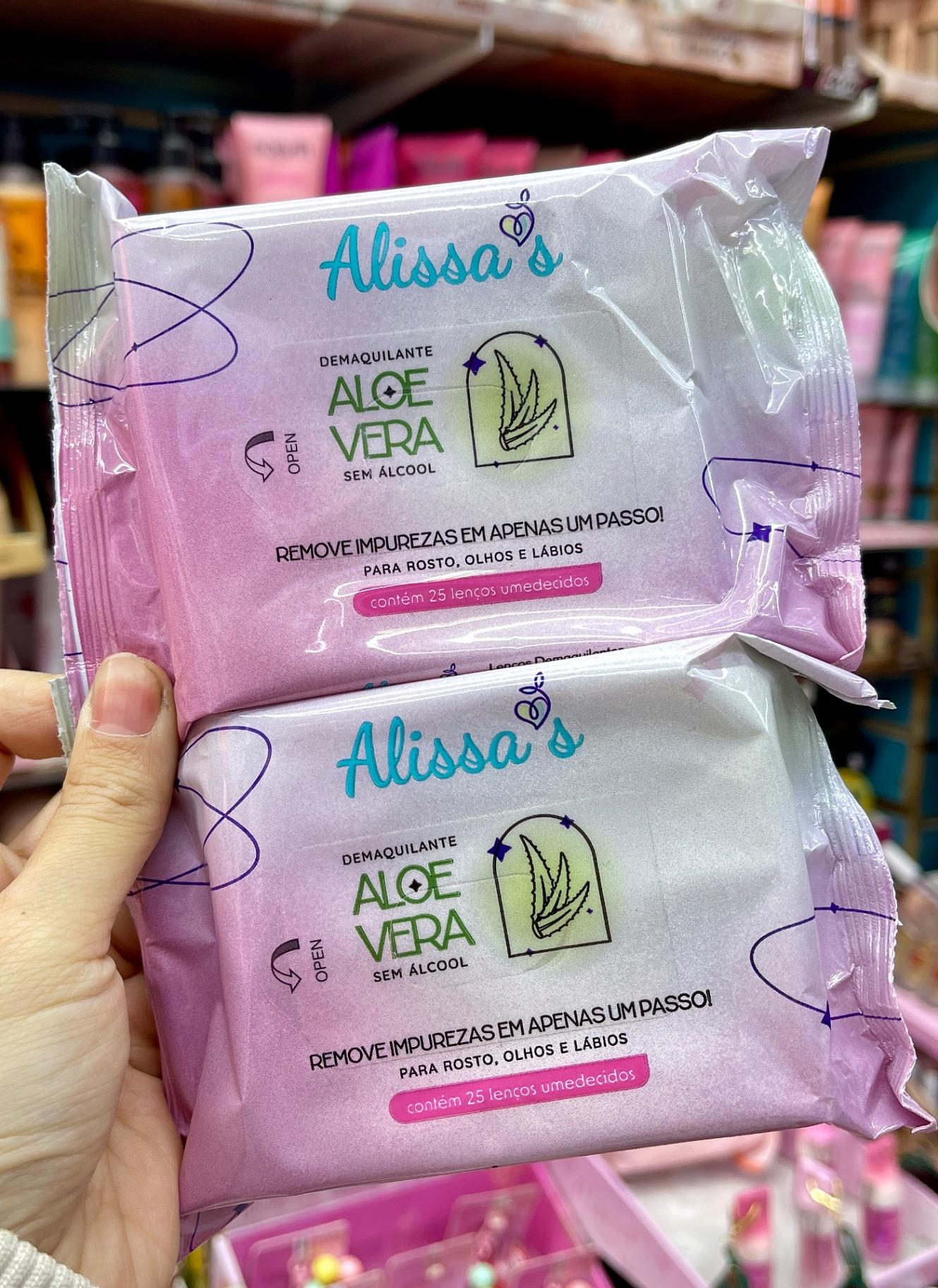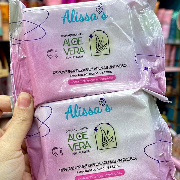 Lenço umedecido demaquilante Alissas aloe Vera removedor de maquiagem