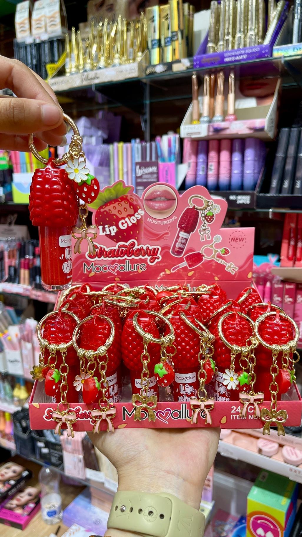 Lip gloss chaveiro morango mocoallure
