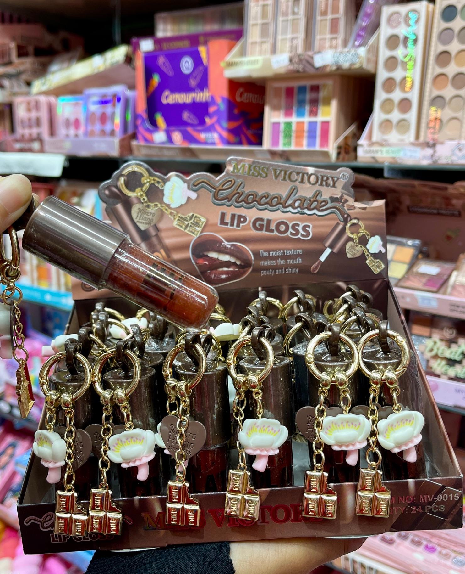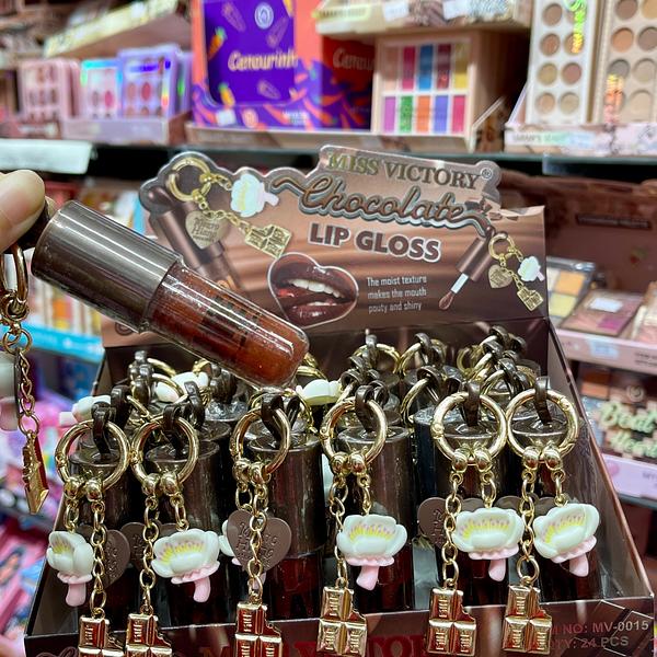Lip gloss chocolate com chaveiro MISS VICTORY