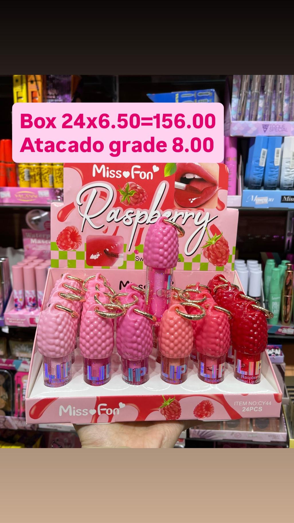 Lip gloss de framboesa com chaveiro miss fon